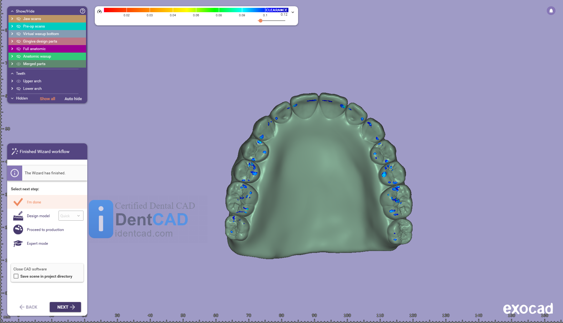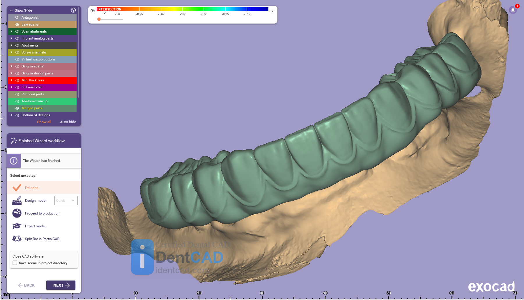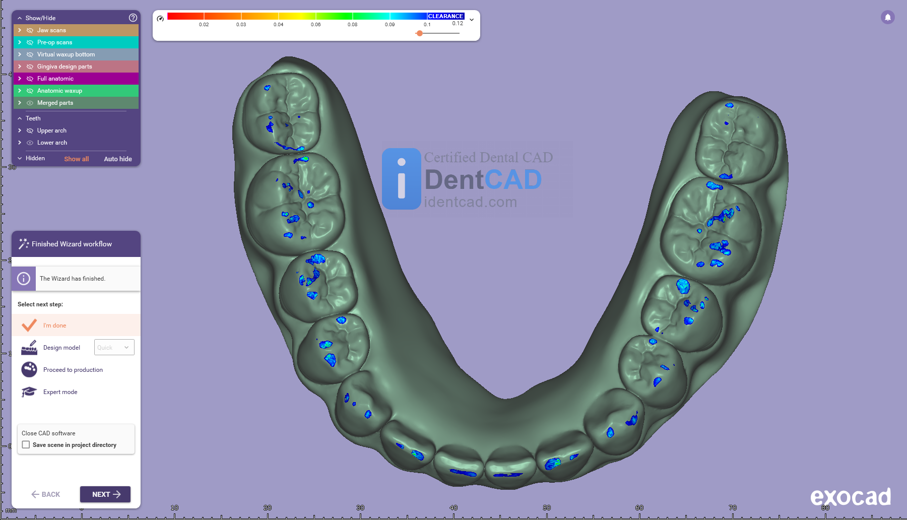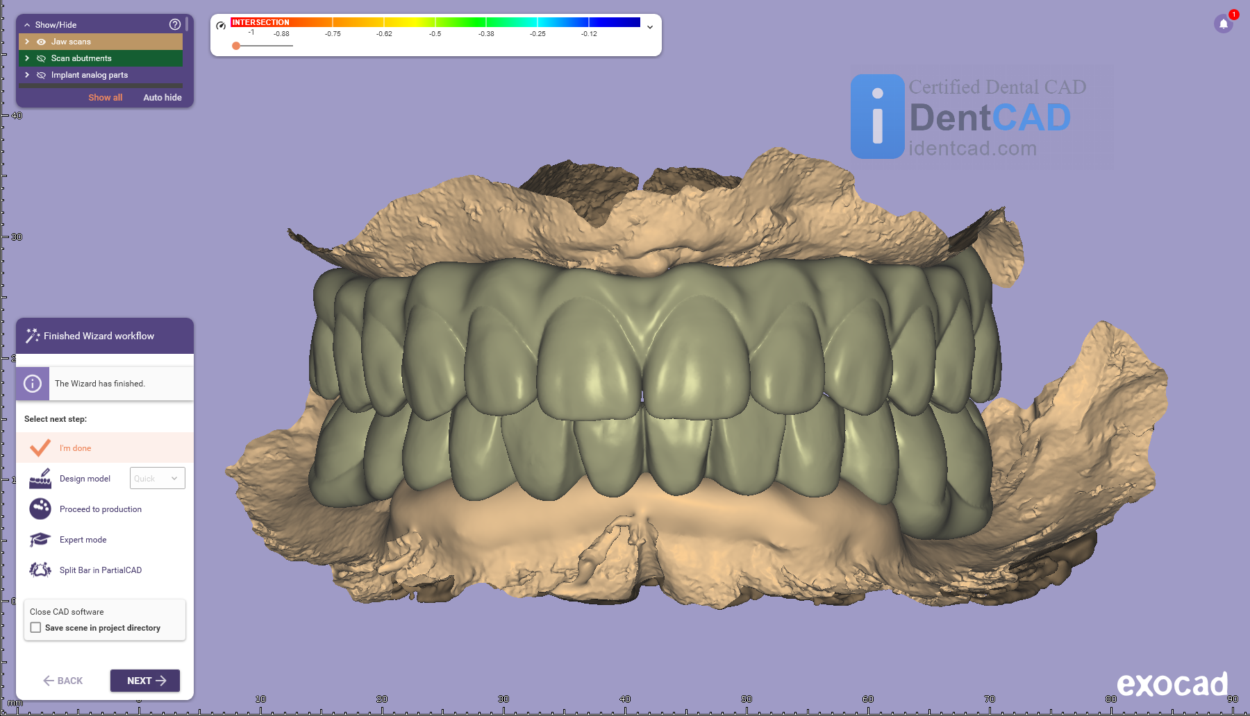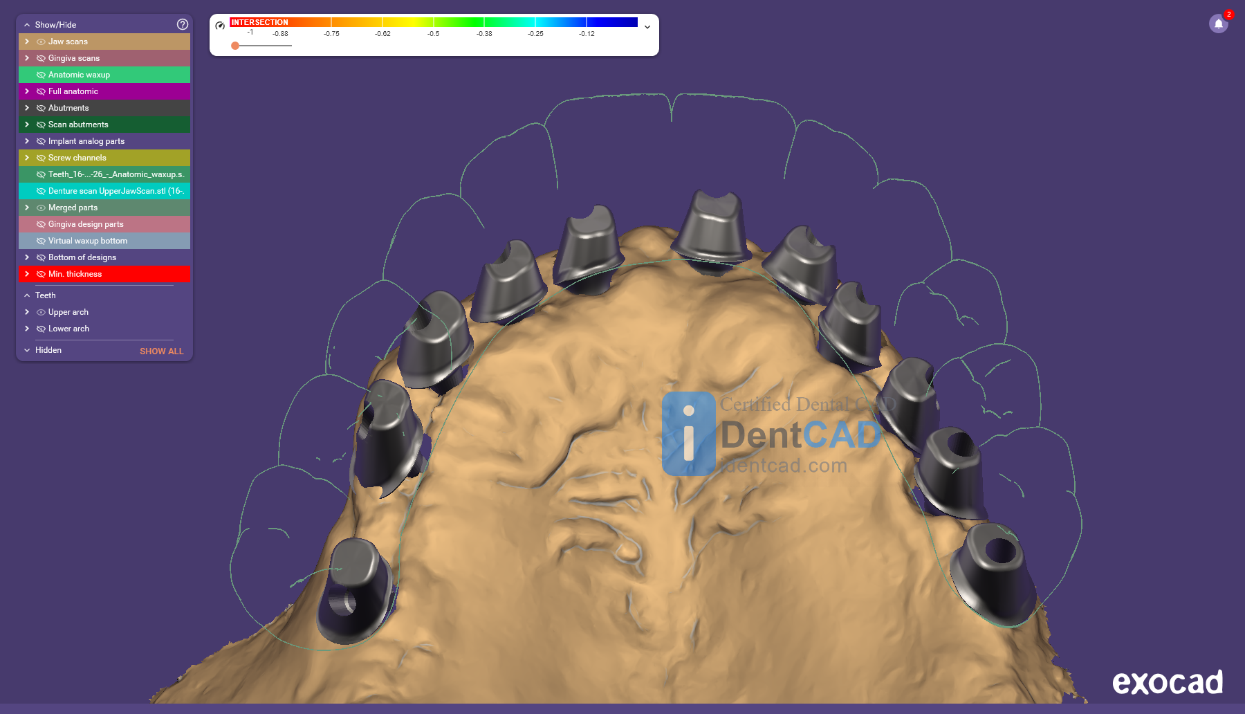 Our primary workflow is built on Exocad (DentalCAD) for restorative, implant, and smile design cases. We also use 3Shape for cross-verification and articulation checks.