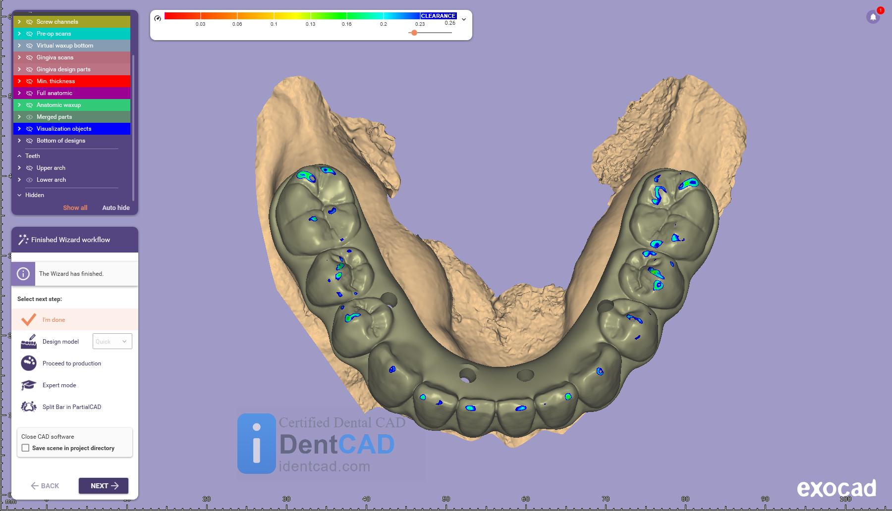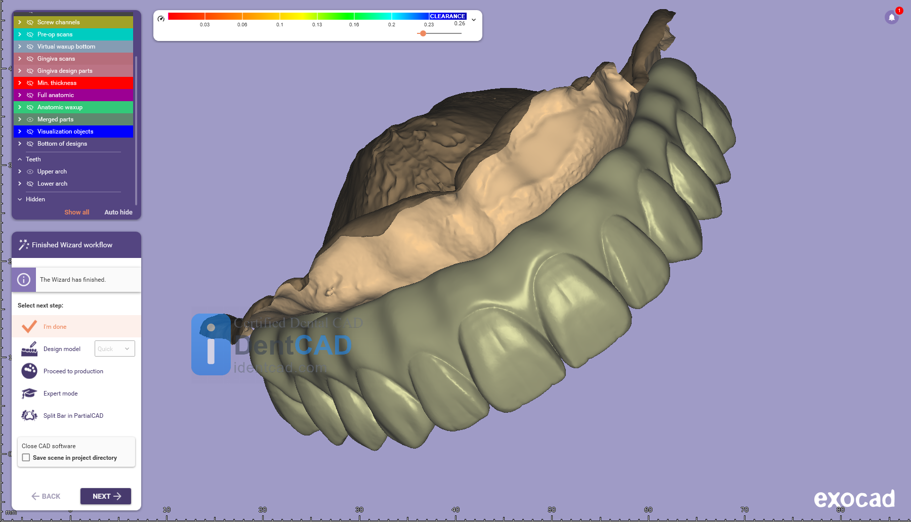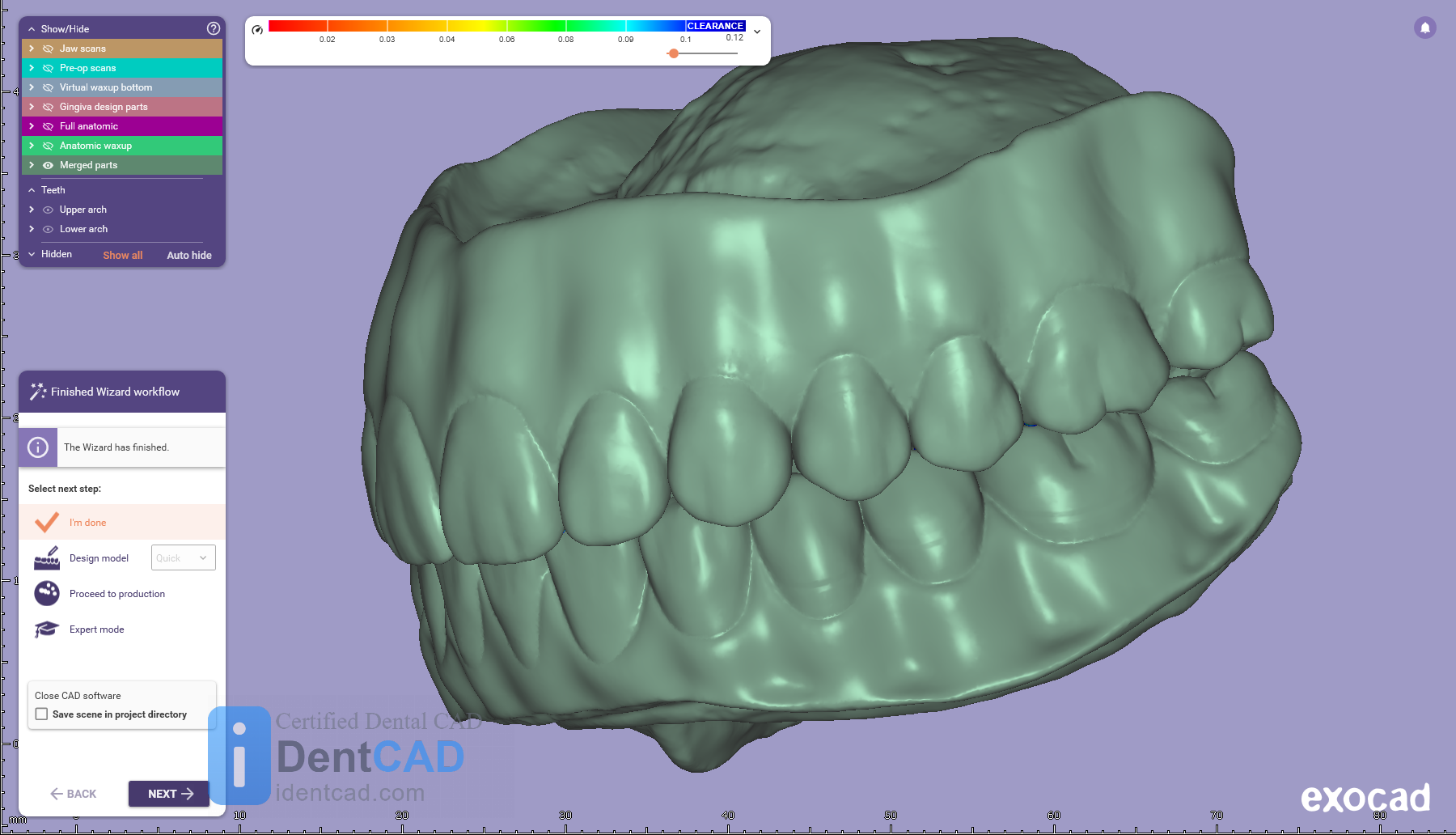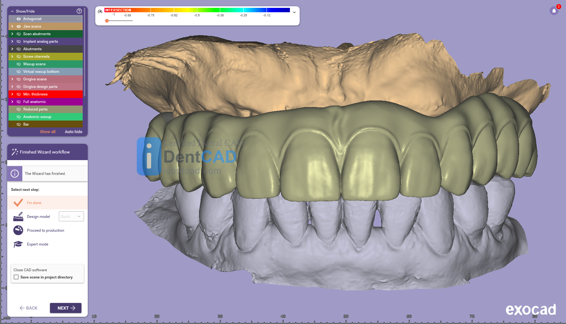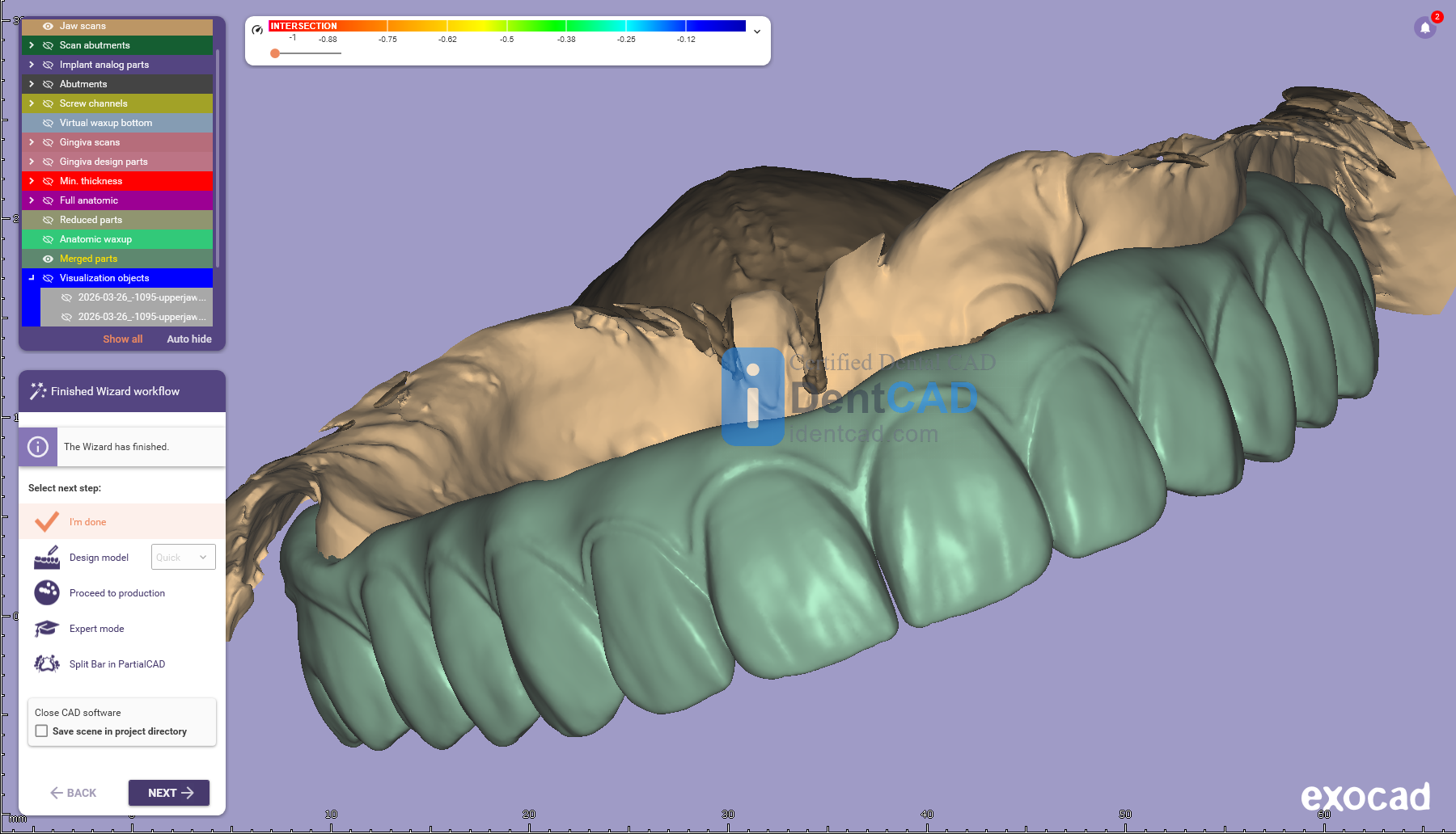 Our primary workflow is built on Exocad (DentalCAD) for restorative, implant, and smile design cases. We also use 3Shape for cross-verification and articulation checks.