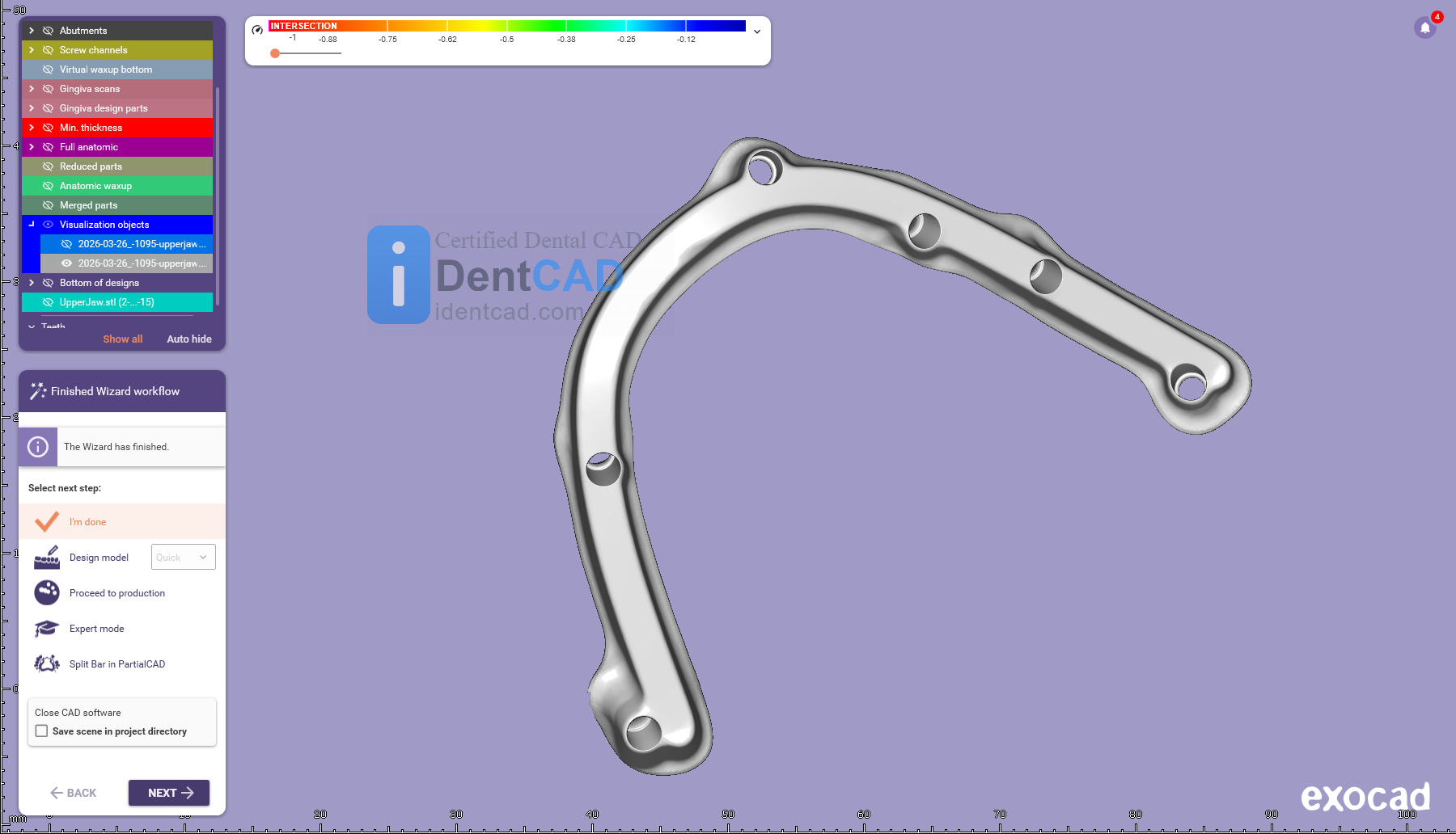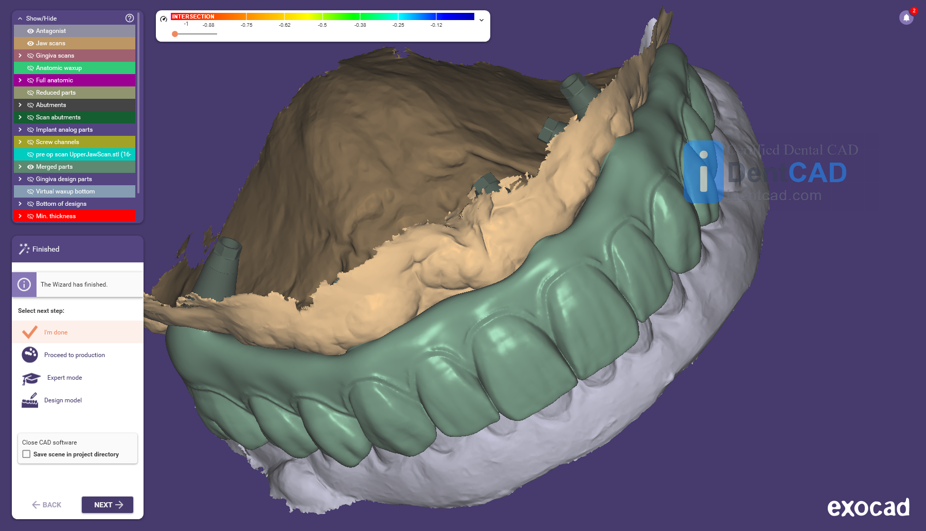 Additional: STL / PLY interchange, implant library mapping, tolerance profiles for common milling & DLP printers.