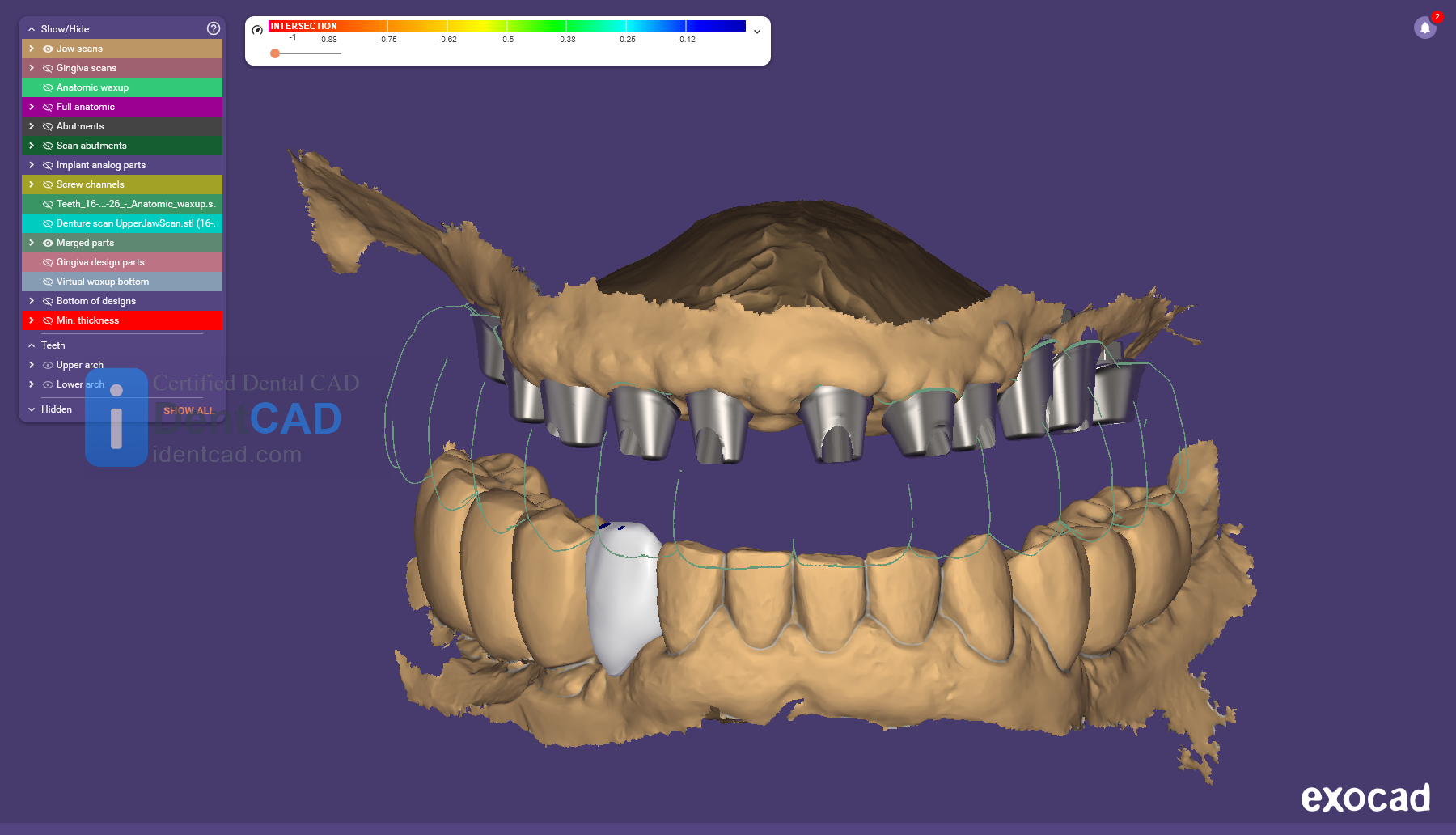 Annotated screenshots / overlay validation for esthetic or implant confidence before finalization.